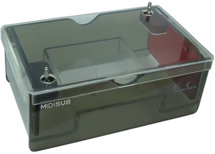 Salient Features:Uni-directional migration Gel size: 10 (w) x 10 (l) cm Running length (cm): 9.3 with 1 comb/ 4.3 with 2 combs No. of wells: 15 x (2 combs) Buffer requirement: 350 mL |